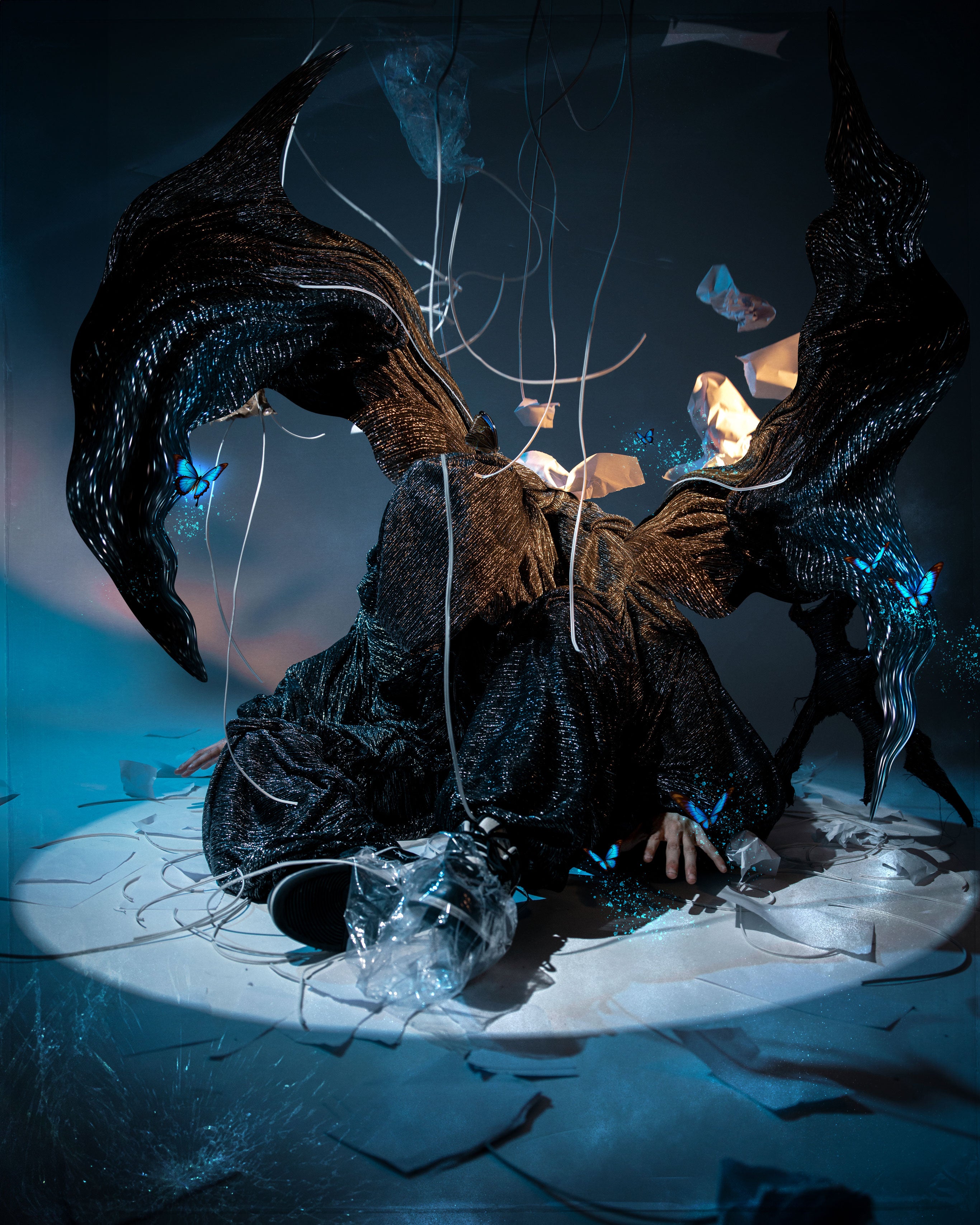 Relié à des lignes invisibles, il flotte entre deux mondes.